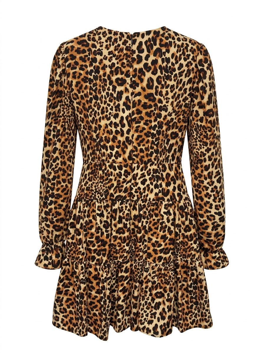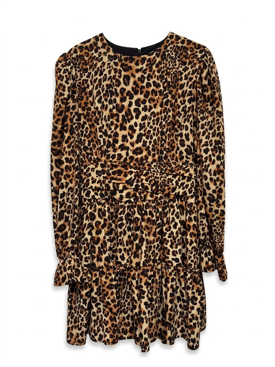 Estampado: Leopard print de alta definición en una paleta cromática de ocres, camel y negro.